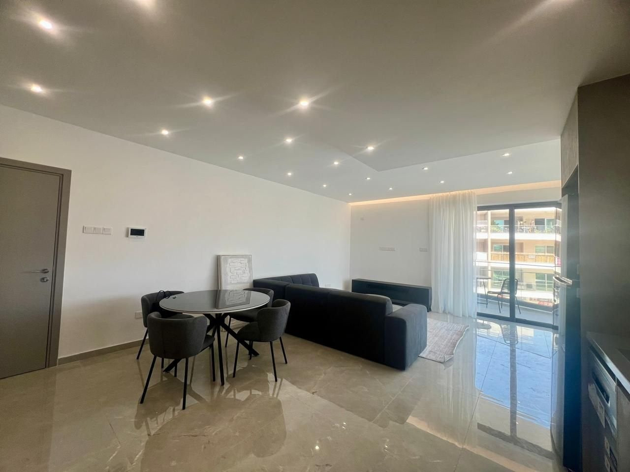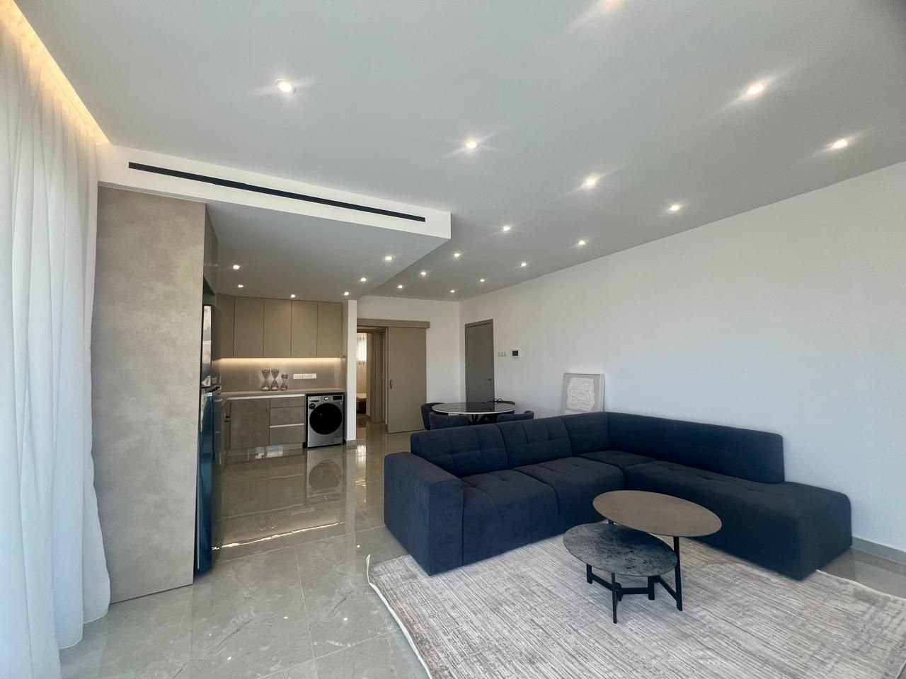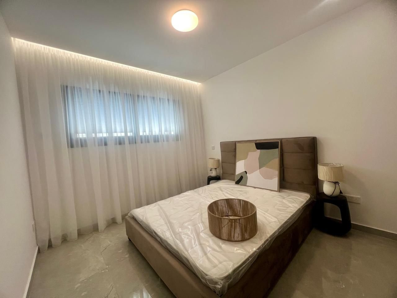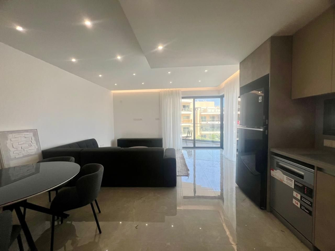 A modern, open-plan two-bedroom apartment located in the Petrou & Pavlou area, in the center and close to all amenities, with access through two gated entrances. The apartment features high ceilings and large sliding doors in the living area, creating a bright open-plan living, dining, and kitchen space. It includes two bedrooms and two bathrooms, is fully furnished with electrical appliances, has never been lived in, and was constructed in 2025. Situated on the second floor, the property offers 83 sq.m of covered area and a 23 sq.m covered veranda. The living area is equipped with a central A/C system, while the bedrooms have split-unit A/Cs and electric shutters. Additional features include one covered parking space and a storage room.